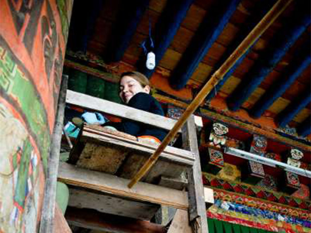 Wall paintings conservation in Lachen Manilhakhang, North Sikkim, India.